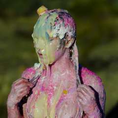 Messymissmia was surprised by The Great Reinholdo with a big sloppy cream pie to the face